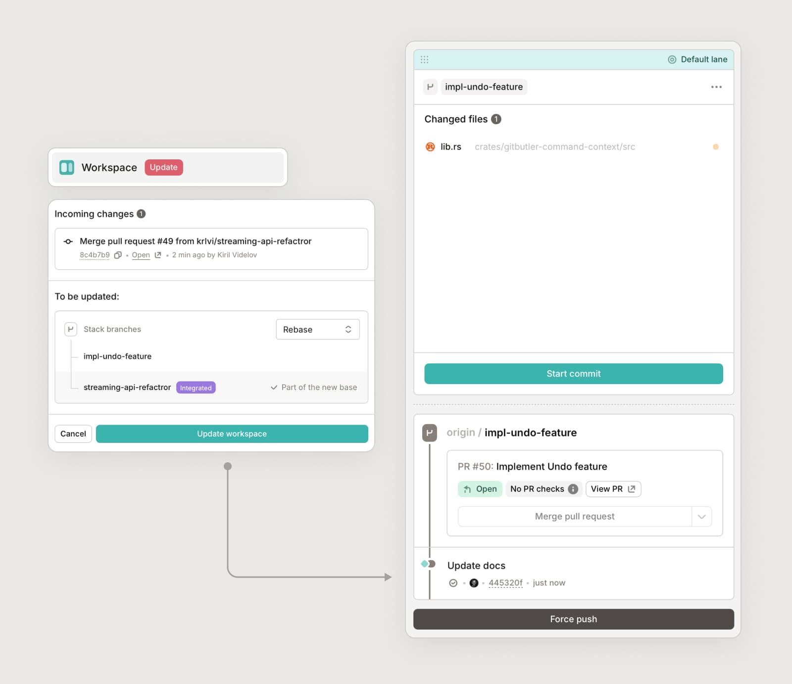 The workflow below assumes a GitHub remote. If you are using a different forge, you can still use this functionality but will need to manually create/update the Pull/Merge Requests